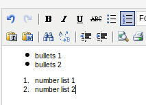 Insert/Remove bullet List and Insert/Remove Numbered List buttons are available in the HTML text editor.